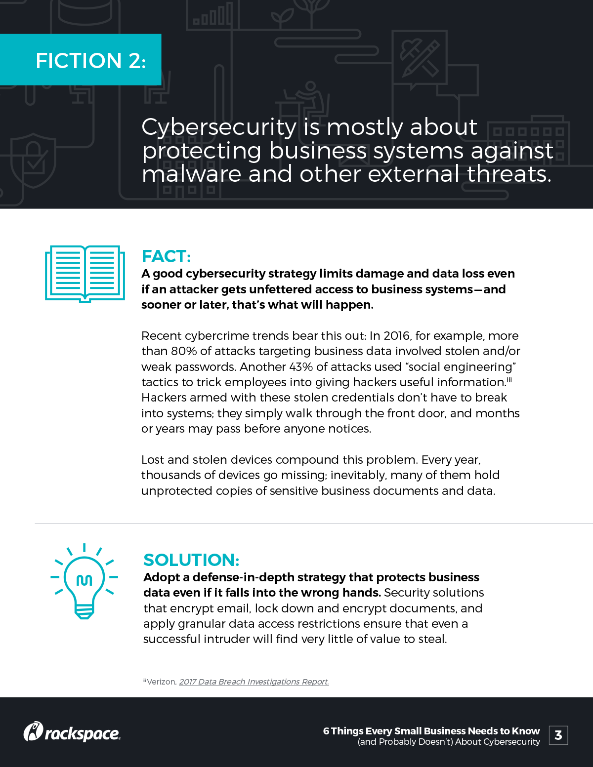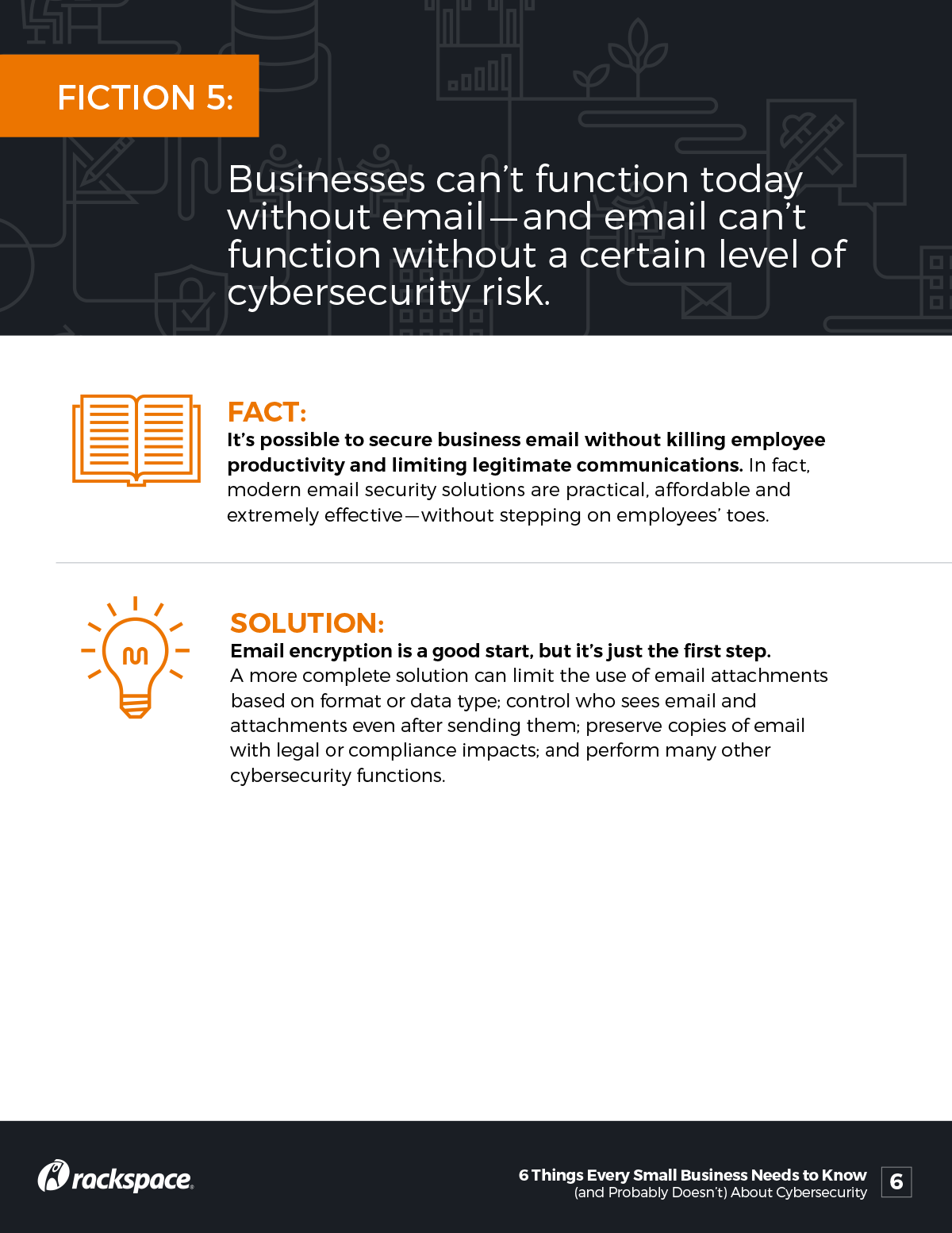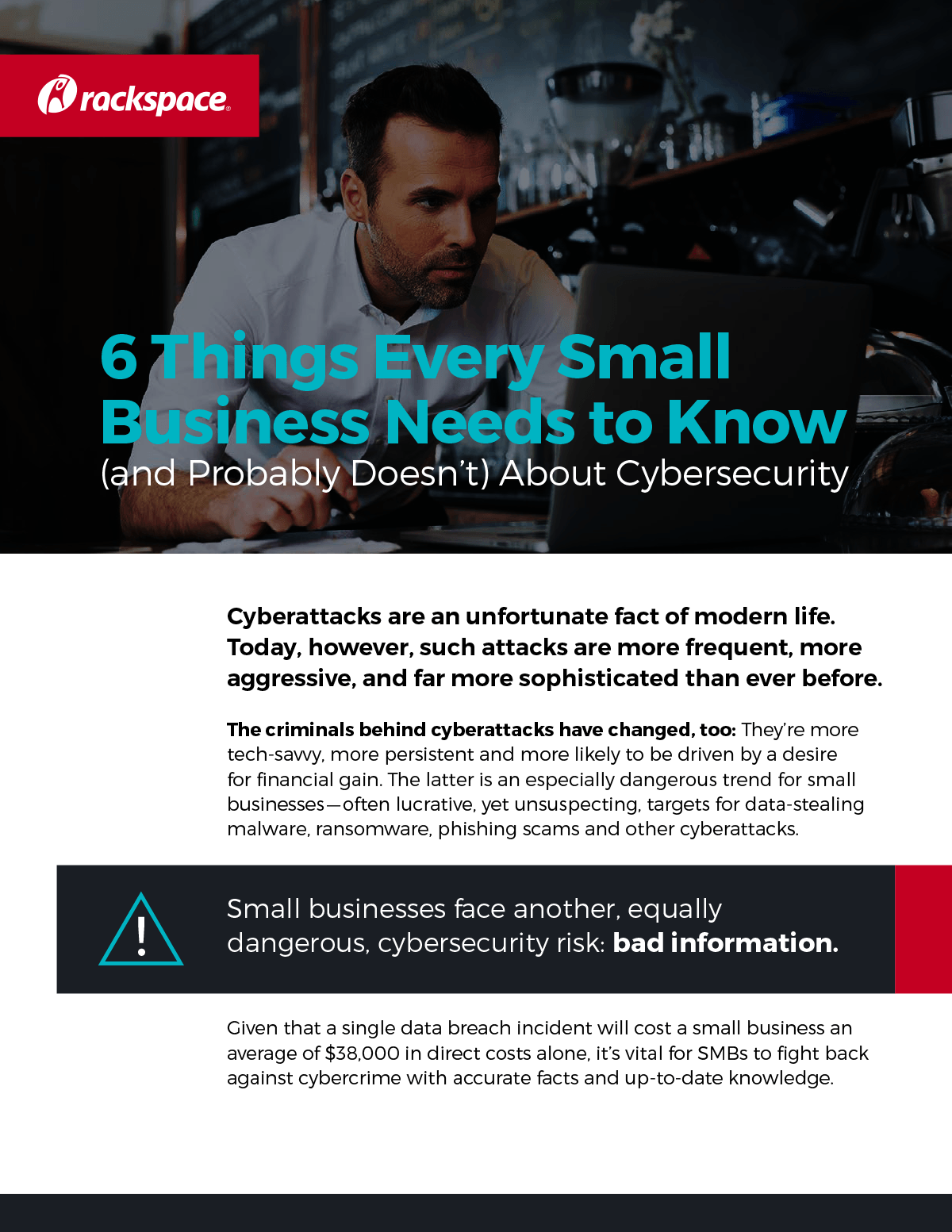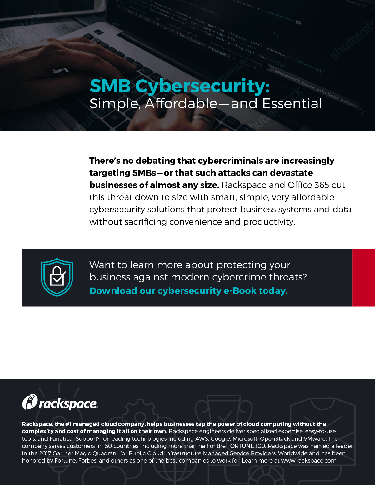 Email is a dynamic tool we use every day. From sending confidential data to executing a marketing campaign, email simply gets the job done. Unfortunately, email is also an effective tool for cybercriminals. As a business owner, you probably don’t have the time to manage your own security, and recruiting and retaining the needed talent in-house is an ongoing challenge. How do you know which email security measures you should be taking? How confident are you that your current security strategy is enough? At Rackspace, we've studied what different types of businesses need as part of their email security strategy in order to keep their business, and their clients, safe. We've packaged our Rackspace Email and Microsoft Office 365 offerings to come with an uptime guarantee that's inclusive of numerous security measures ranging from email archiving, encryption, premium antivirus and antispam software, customizable controlled access to confidential files and more. From protecting your small business from cybercriminals to assisting you in your HIPAA compliance, we have a security package for you. And as always, on top of our security offerings, our support team is available to your business rain or shine, 24x7x365. Every business requires reliable and efficient email security and we know that one blanket strategy does not fit all. Our variety of email security offerings are purposely created to fit your business size, email needs, and industry. Not sure if your email security is as robust as it needs to be? Take a look at our checklist below to see if there's anything you're missing.